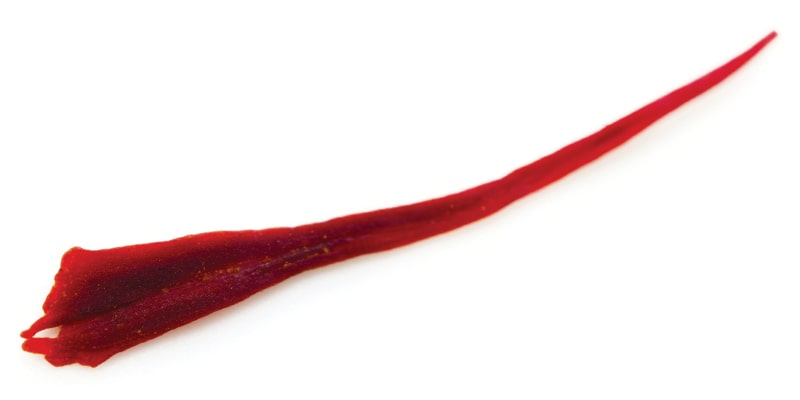 Ten tweede: het uiterlijk van saffraan, originele saffraan is smal aan de ene kant en breed aan de andere.